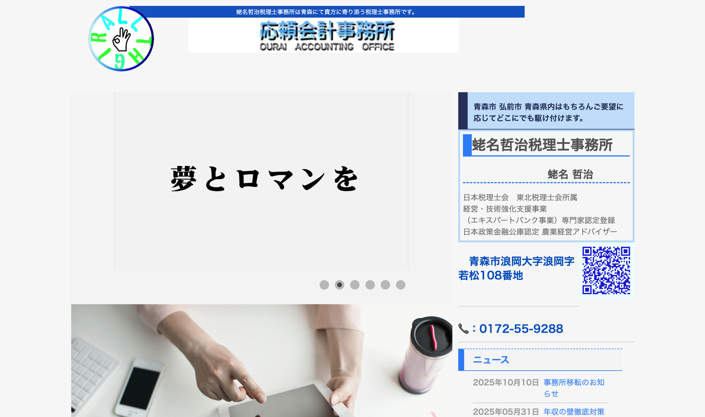 青森市浪岡に拠点を置く蛯名哲治税理士事務所は、地域の方々に寄り添い、頼られる存在を目指す「応頼(おうらい)会計」として親しまれています。税務署勤務33年の豊富な経験を持つ代表が、約1,000件の調査実績を活かした的確なアドバイスを提供しているのが特徴です。青森県内全域へ柔軟に駆けつけ、経営者と同じ目線で課題解決に取り組む、信頼の厚い税理士です。