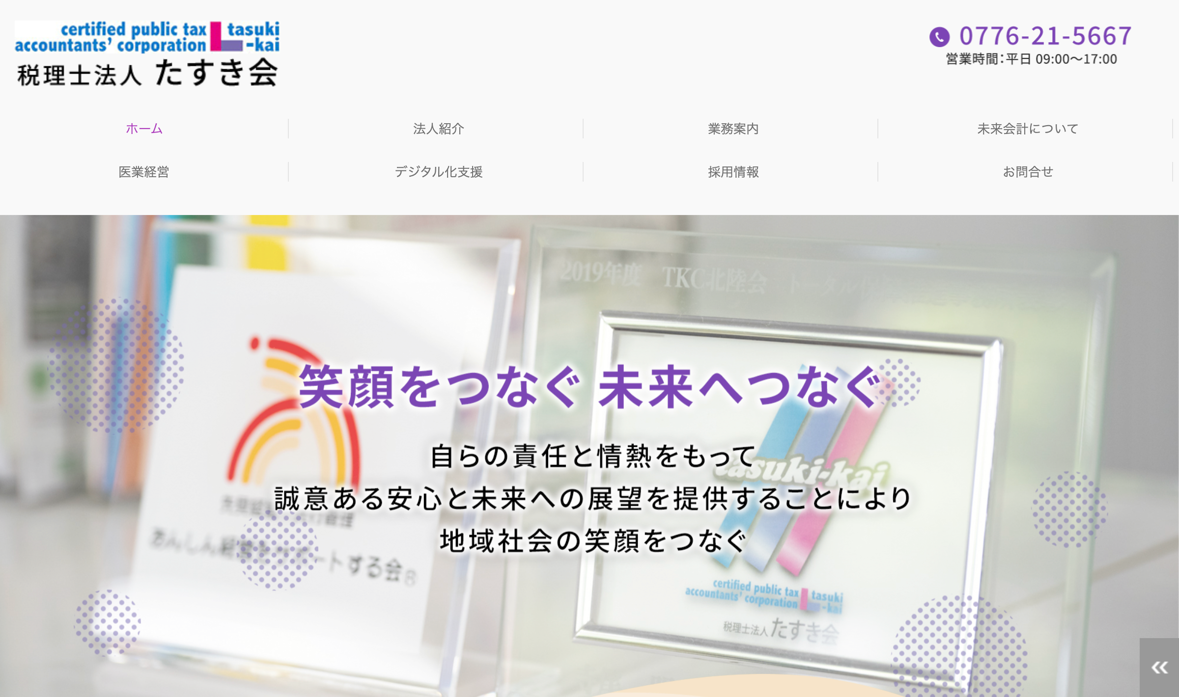 税理士法人 たすき会は、「笑顔をつなぐ 未来へつなぐ」という理念のもと、経営者の悩みに真摯に向き合う温かみのある税理士法人です。単なる会計処理にとどまらず、将来を見据えた「未来会計」や事業承継の支援に強みを持っており、福井市で長期的な成長を目指す経営者にとって非常に頼もしい存在といえるでしょう。企業の「今」と「未来」を共に考え、並走してくれるパートナーをお探しの方に、自信を持って推薦する税理士法人です。