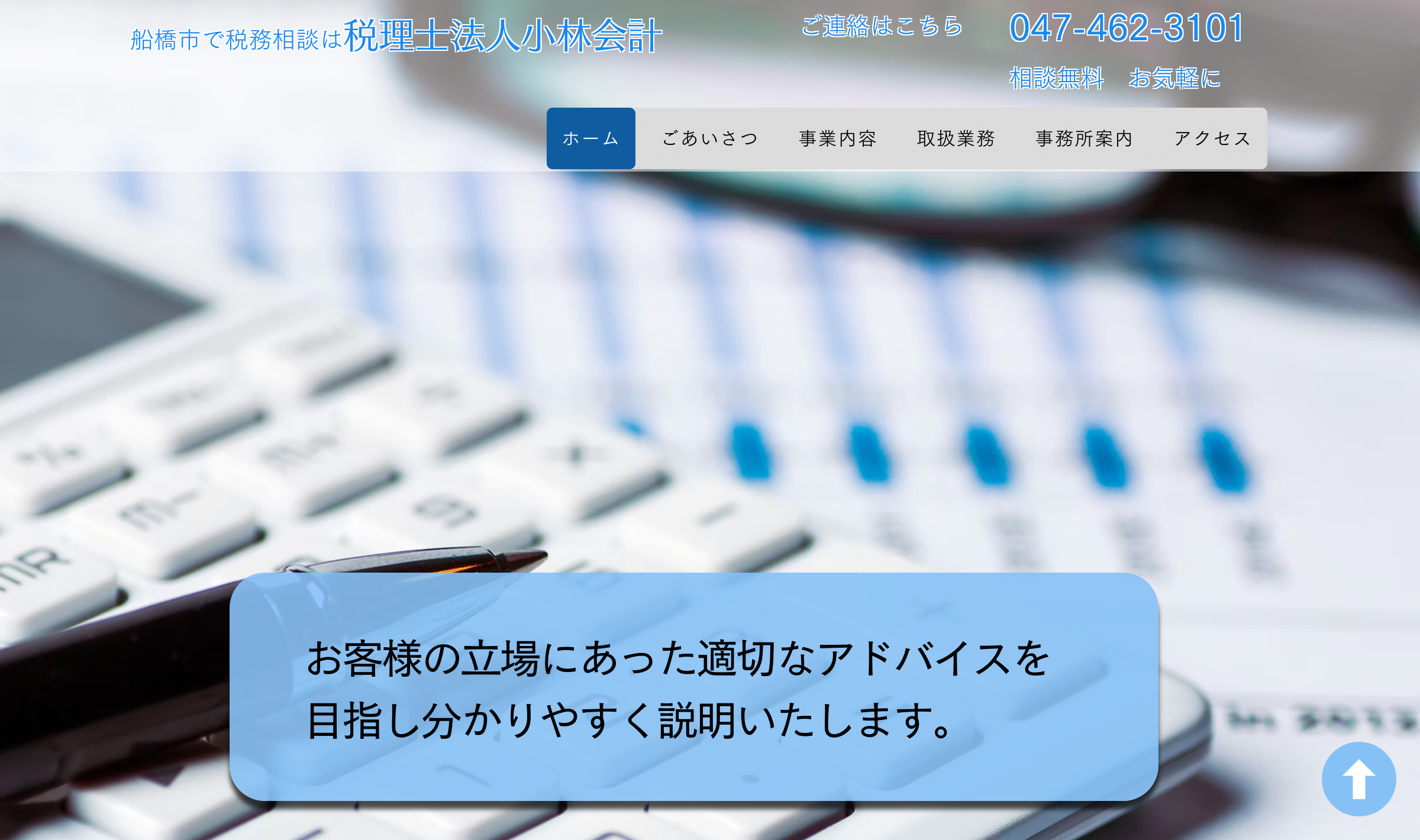 千葉県船橋市で税務相談をお考えなら、飯山満駅から徒歩圏内の税理士法人小林会計が最適です。毎年改正される税法や進化するテクノロジーに迅速に対応し、常にお客様の立場に立った適切なアドバイスを提供しています。複雑な税金や会計の悩みを親身に解決する地域密着の税理士として、初めての方でも納得・同意できる丁寧な説明を徹底し、事業の発展を力強くサポートします。