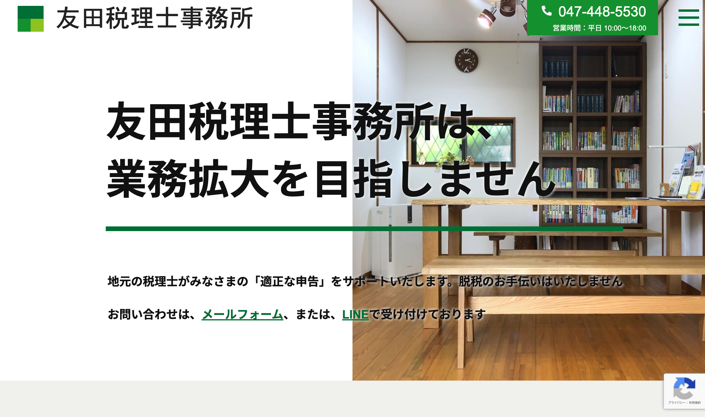 千葉県船橋市に拠点を置く友田税理士事務所は、鎌ケ谷市や白井市を含む地域に密着したサービスを提供する税理士事務所です。代表がすべてのお客様と直接向き合うことを大切にしており、業務拡大を目的とせず、一人ひとりに寄り添った「適正な申告」を徹底しています。相続税や贈与税の相談から法人の決算まで、地元の専門家として信頼できるサポートを提供し、事業や資産の安心を支えます。
