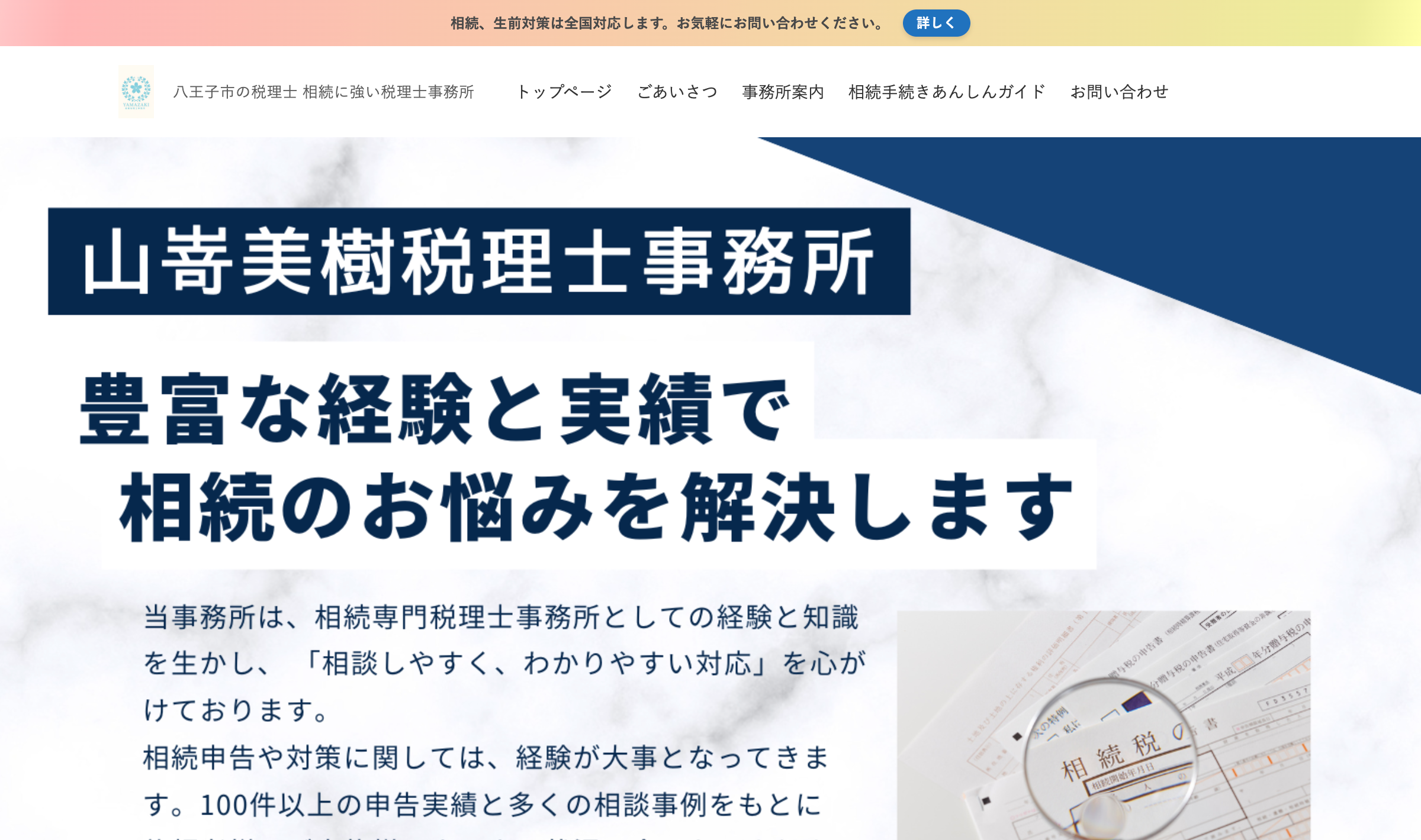 東京都八王子市を拠点とする山嵜美樹税理士事務所は、相続税申告と生前対策に特化した、地域の方々に寄り添う事務所です。代表の女性税理士が全ての面談を直接担当し、100件以上の相続申告に携わった豊富な経験を活かして、各家庭の状況に合わせた最適なプランを提案します。八王子市を中心に全国対応も可能で、難しい税務の話も「相談しやすく、わかりやすい」言葉で丁寧に説明してくれる信頼の税理士です。
