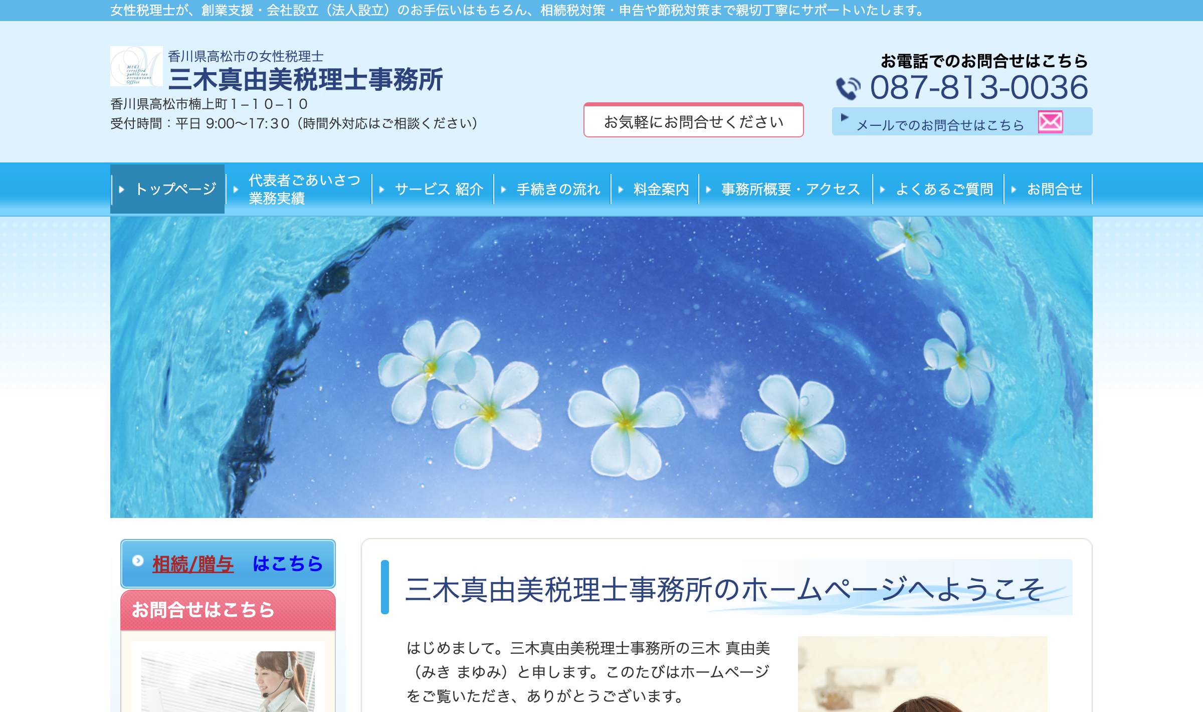 香川県高松市周辺で、創業・会社設立や相続税についてお悩みの中小企業経営者や個人事業主におすすめの税理士事務所です。女性税理士が親身になって対応してくれるため、初めての方でも安心して相談できます。平日は多忙な方のために土日や時間外の対応も相談可能となっています。