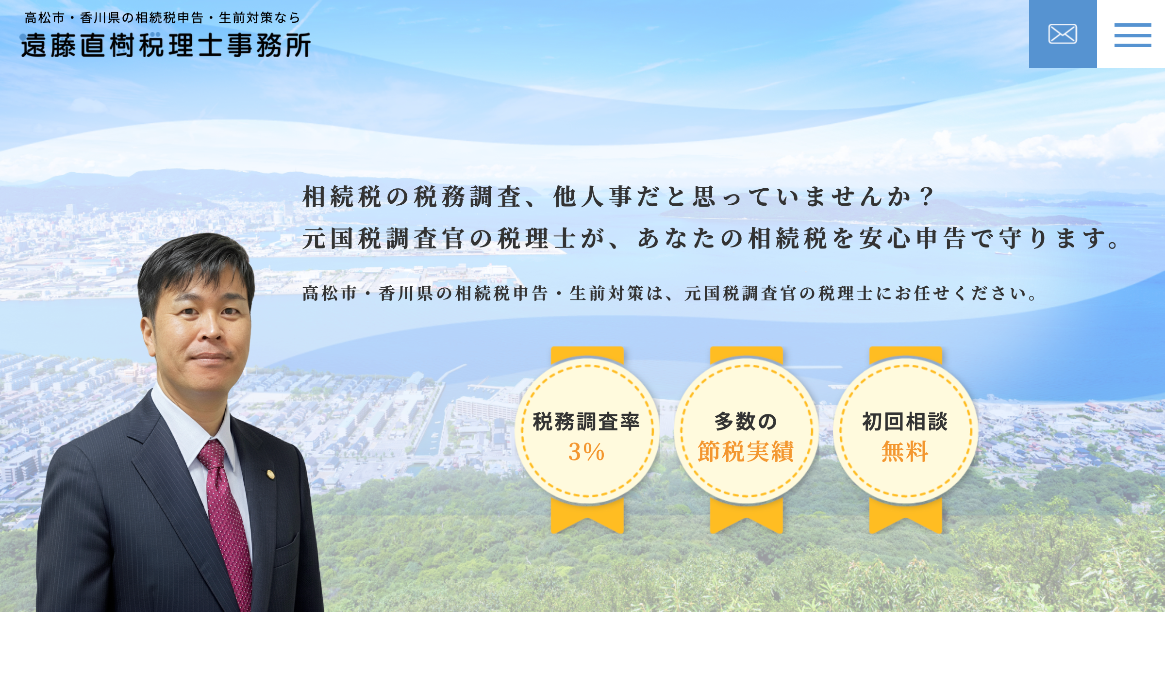 香川県内で、相続税の申告や将来の生前対策について不安を抱えている方におすすめの税理士事務所です。元国税調査官という圧倒的な知識量と、顧客の心に寄り添う親身な姿勢を兼ね備えています。相続について何から手をつけて良いか分からない方は、一度相談してみてはいかがでしょうか。