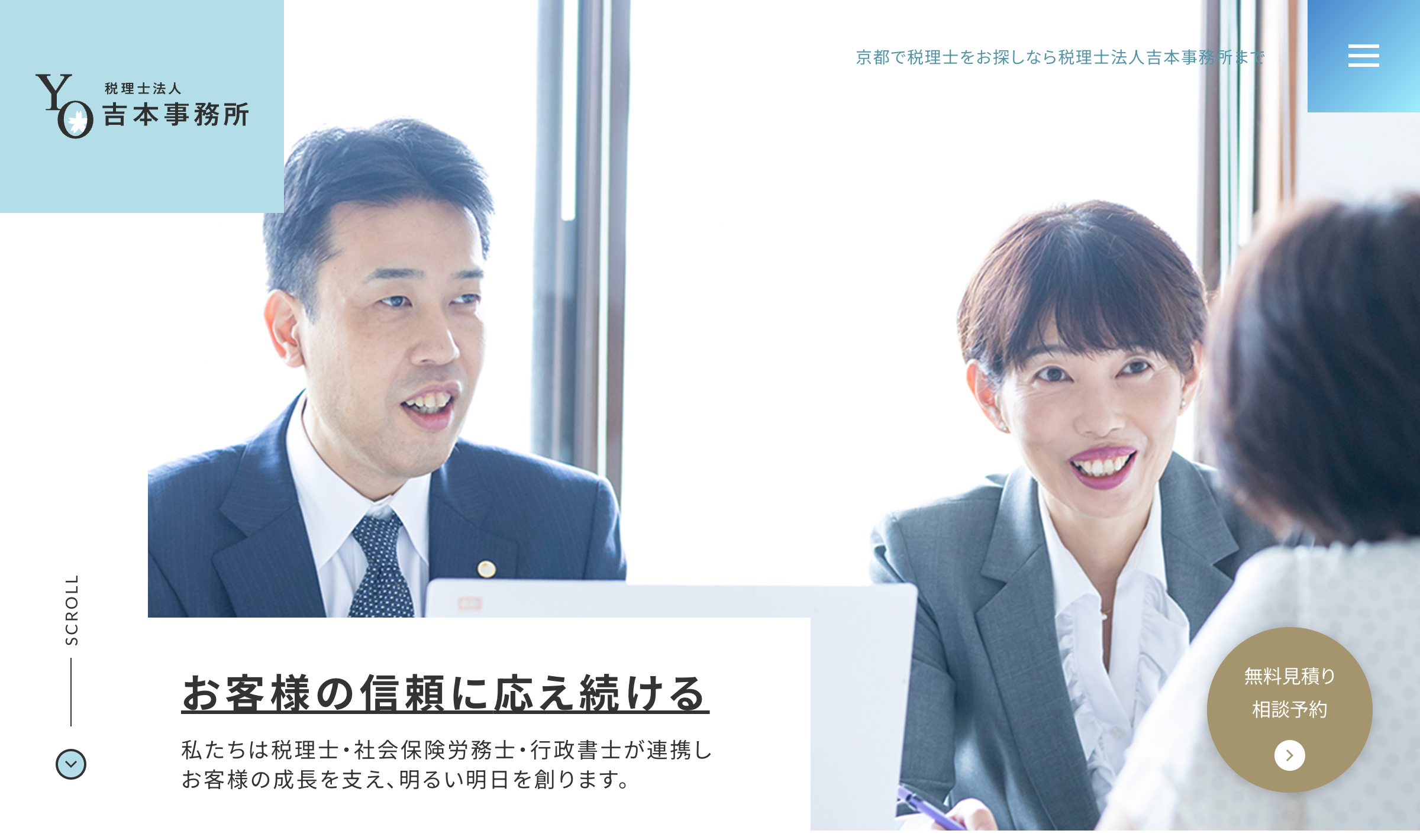 税理士法人吉本事務所は、京都で1978年に開業した歴史と実績のある税理士事務所です。最大の強みは、税理士に加えて社会保険労務士や行政書士が常勤しており、各分野の専門家が連携してワンストップでサポートを提供できる点にあります。これにより、税務会計から雇用トラブル、許認可申請まで、複数の士業を渡り歩くことなく効率的に解決へと導いてくれます。長年の経験に基づくノウハウと最新のIT技術を駆使し、中小企業経営者の安定的な事業発展を多角的な視点から強力にバックアップしてくれる頼もしい事務所です。
