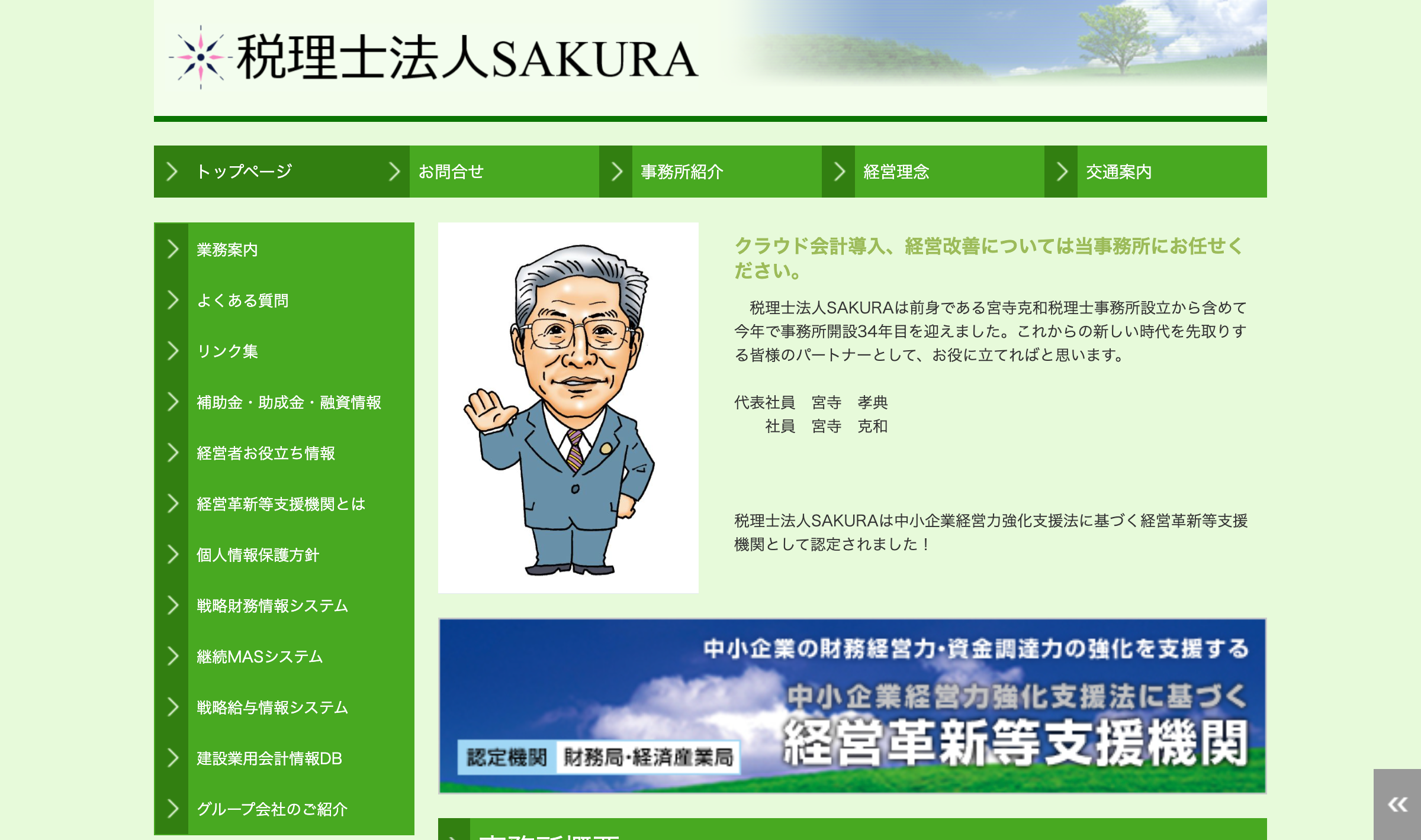 | 主な取扱業務 | 税務・決算業務、独立・開業支援、経理・財務・会計業務、相続相談・申告、リスクマネジメント、経営相談、会計・給与ソフト導入支援など |