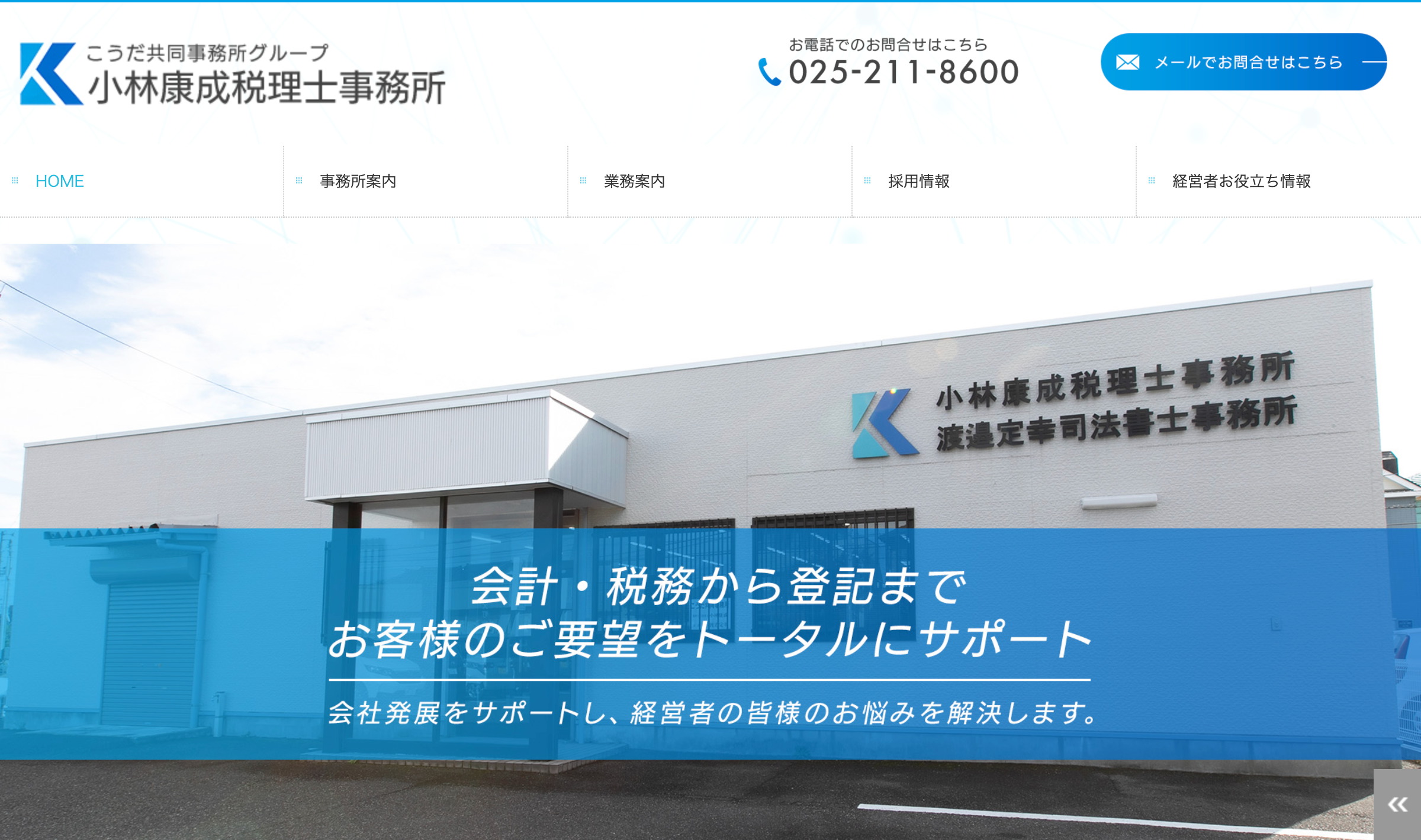 新潟県新潟市西区に拠点を構える小林康成税理士事務所は、親切・丁寧な対応で利用者の経営課題に寄り添う税理士事務所です。TKC全国会に所属しており、財務や会計にとどまらず、事業承継や相続対策など幅広いお悩みに真摯に向き合ってくれます。グループ内に司法書士事務所を併設しているため、会社設立時の登記や不動産の名義変更といった手続きもワンストップで完結できるのが特徴です。毎月の巡回監査によるリアルタイムな経営状況の把握や自計化のサポートを通じ、中小企業の健全な発展とスピーディーな経営判断を力強く後押ししてくれます。