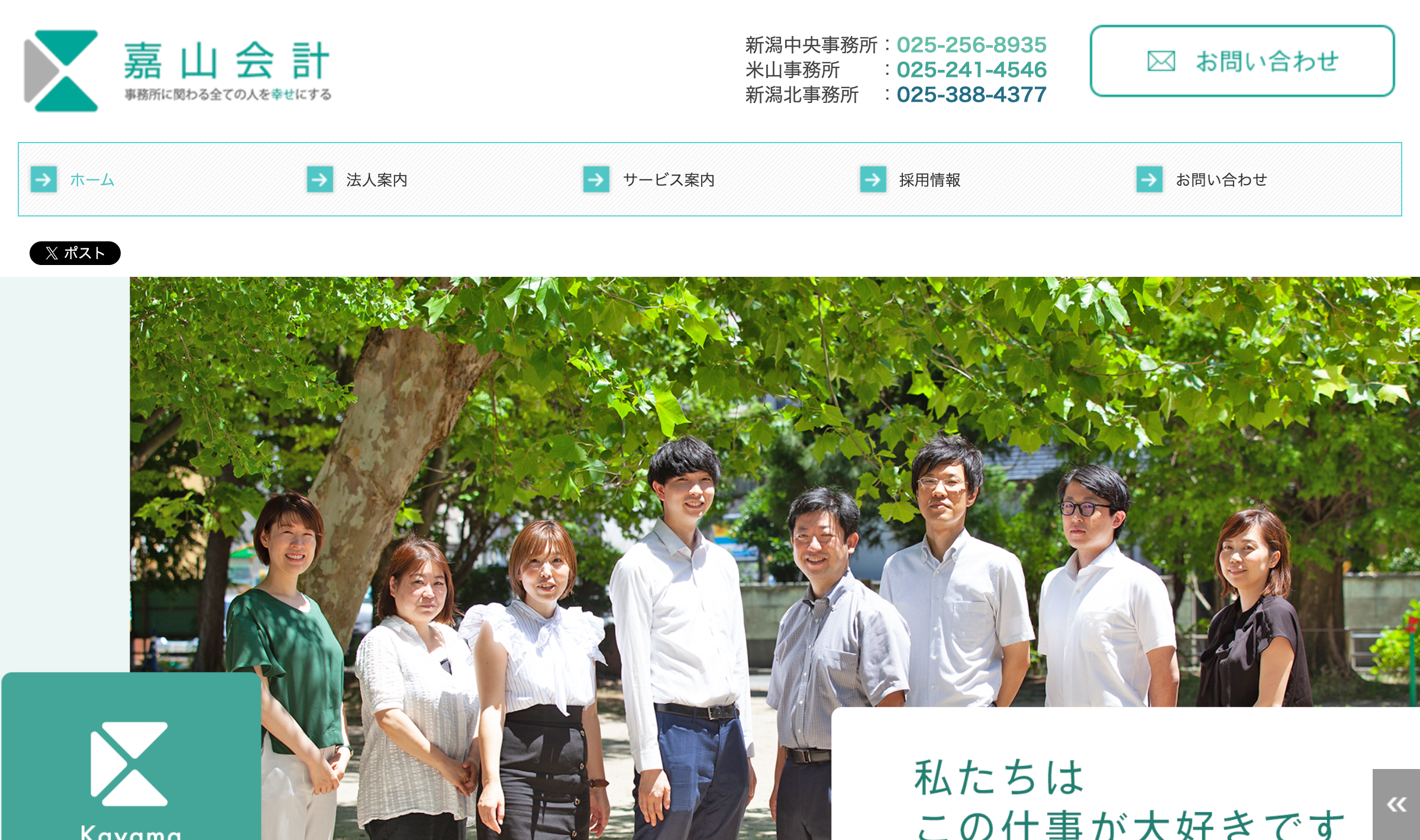 新潟市内に拠点を展開する税理士法人 嘉山会計は、関わる全ての人を幸せにすることを理念に掲げる税理士法人です。認定経営革新等支援機関として、資金繰り改善や黒字化支援など、中小企業の安定した事業経営を力強くサポートしてくれます。毎月担当者が訪問して経営状況を可視化するほか、クラウド会計システムの導入による自計化や業務の効率化も推進。創業期の資金調達から次世代への事業承継まで、企業のあらゆるフェーズに寄り添い、多角的な課題解決に取り組んでくれる会計事務所です。