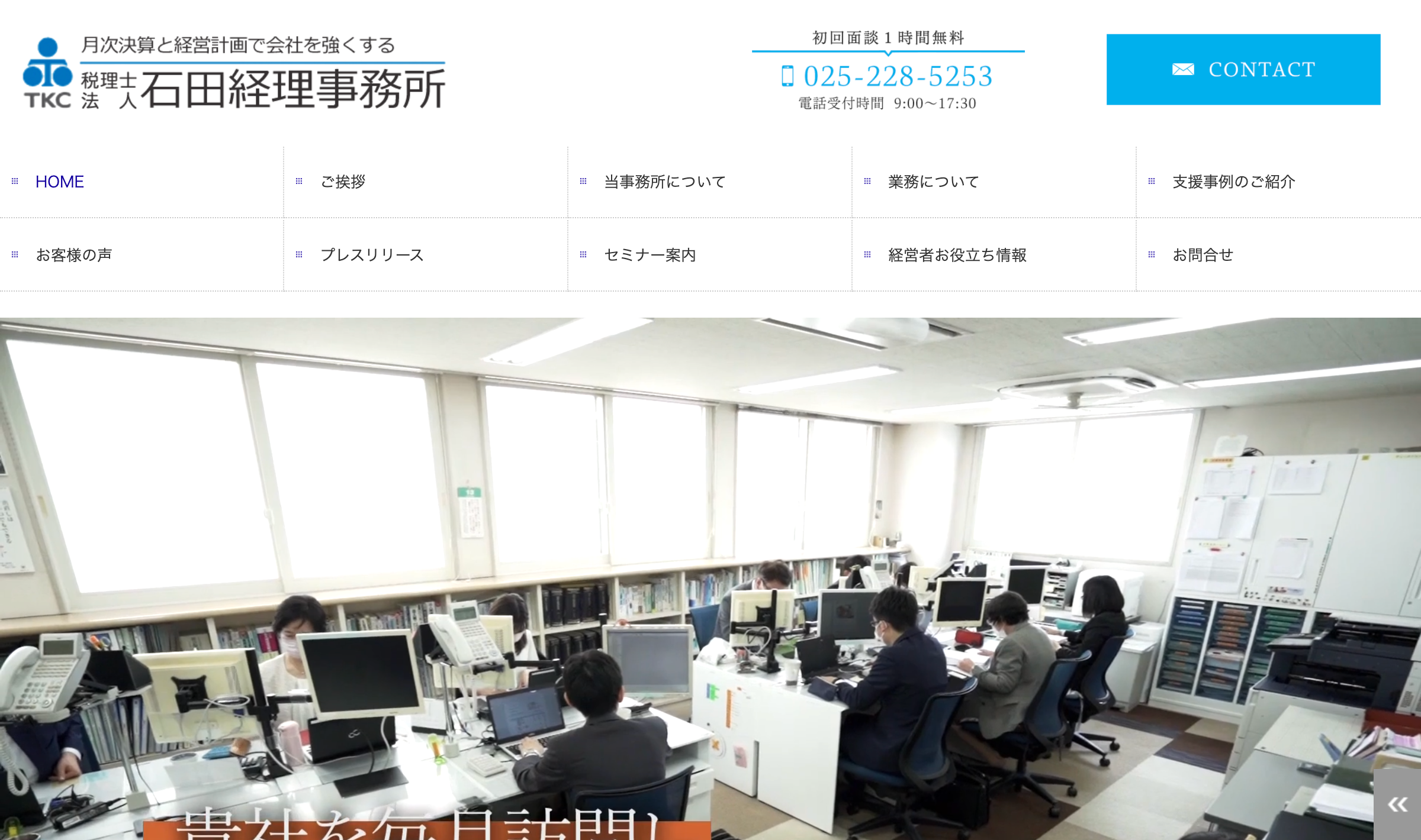 新潟市中央区にある税理士法人石田経理事務所は、昭和25年創業の歴史ある税理士法人です。公認会計士資格も有する代表社員のもと、ビジネスの現場に寄り添った的確なアドバイスを提供しています。決算や税務申告にとどまらず、月次での経営支援や将来予測のサポートを通じ、経営者が自社の状況をタイムリーに把握し、スピーディーな経営判断ができる体制づくりを後押ししてくれます。いい意味で余計なお世話ができる頼もしい身近なパートナーとして、中小企業の成長と安定をサポートしてくれる事務所です。