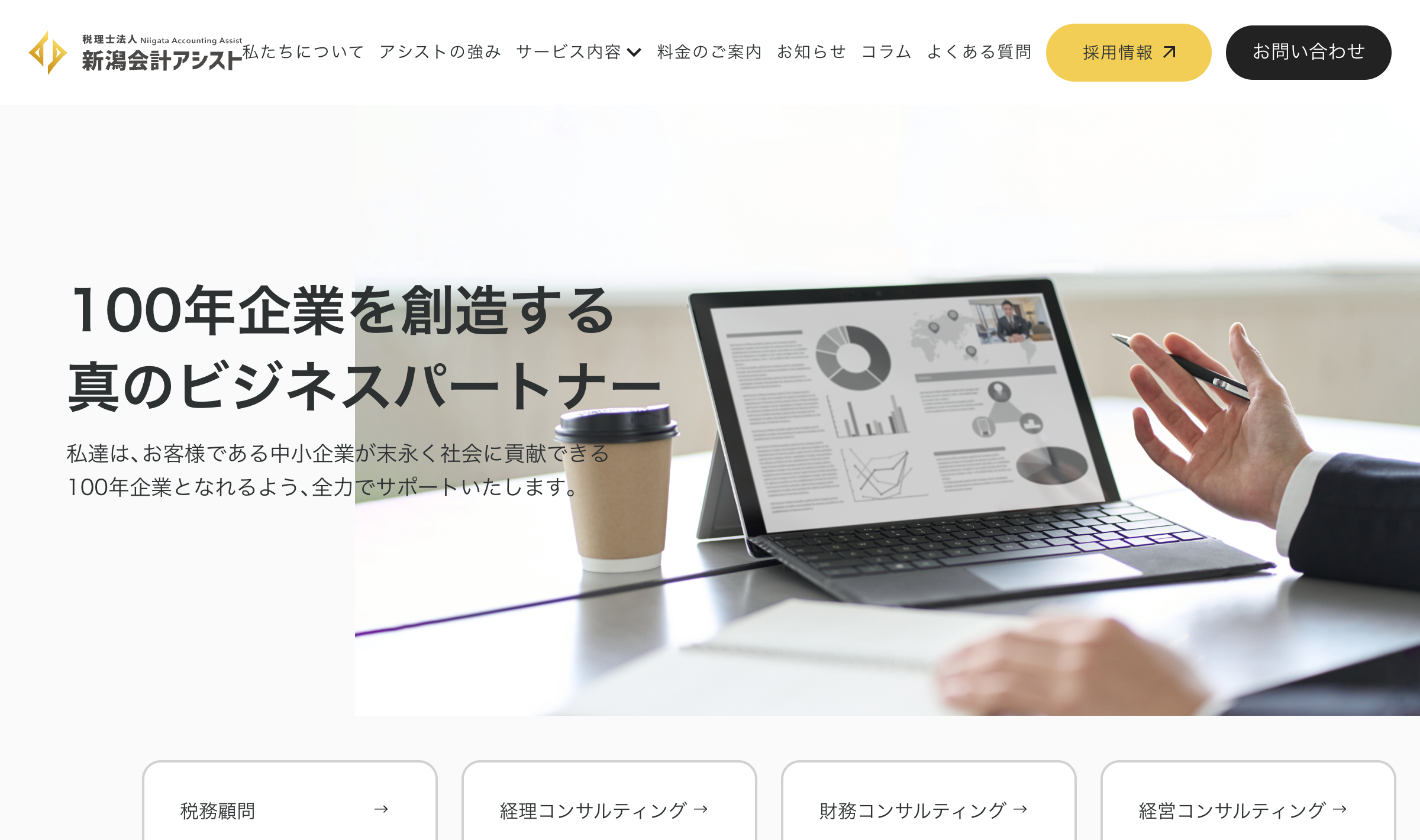 新潟市中央区に拠点を置く税理士法人 新潟会計アシストは、100年企業を創造する真のビジネスパートナーであることを理念に掲げる税理士法人です。税理士をはじめ中小企業診断士や行政書士、金融機関出身者など多彩な専門家が30名以上在籍しています。通常の税務顧問にとどまらず、IT・DXを活用した経理の業務効率化や、資金調達サポート、事業承継やM&A支援まで幅広く対応。相続専門の部署も併設しており、あらゆるお悩みをワンストップで解決に導いてくれる頼もしい事務所です。