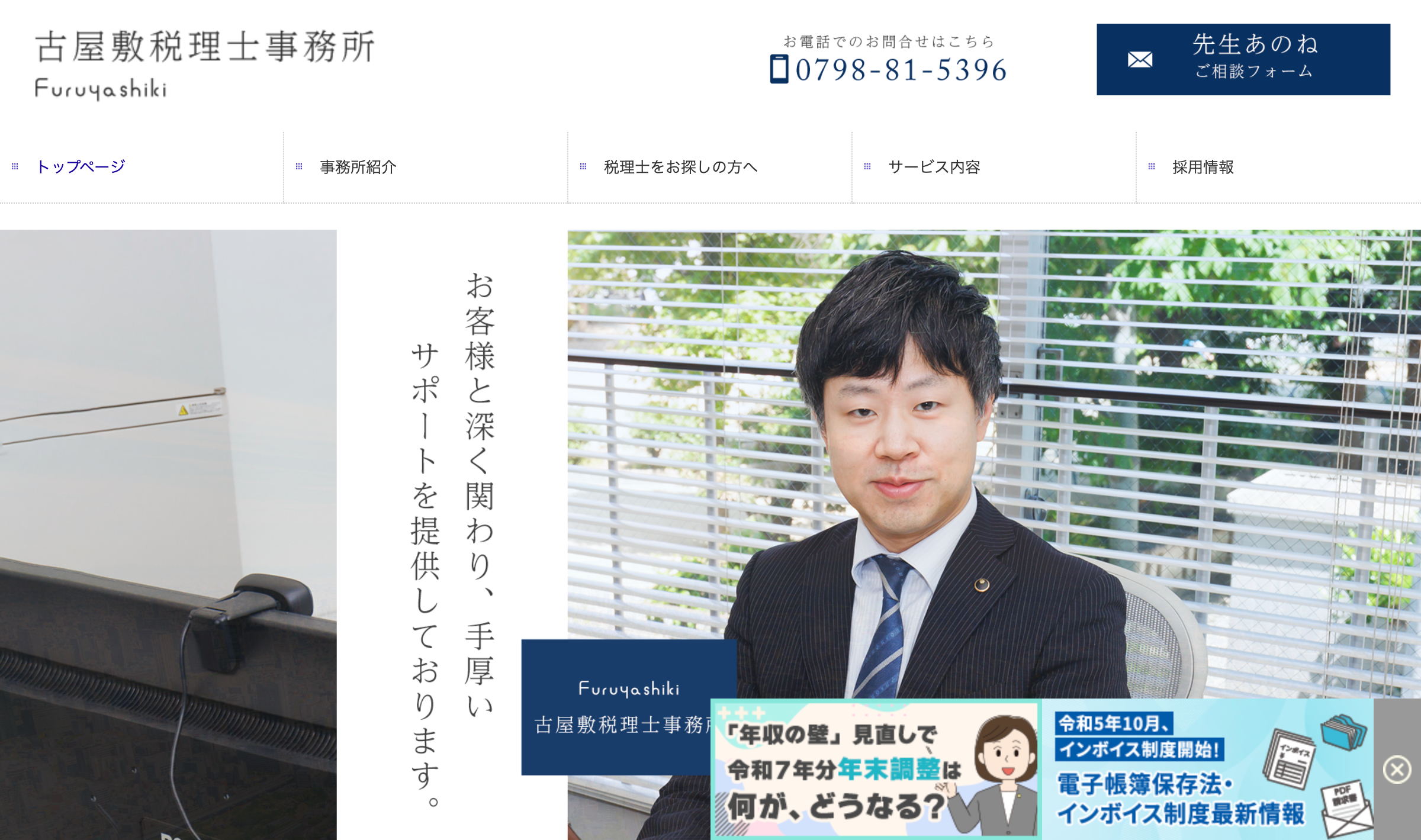 兵庫県西宮市に拠点を置く古屋敷税理士事務所は、偏りのない幅広い業種への関与実績を通じ、多岐にわたる業界知識を蓄積しています。記帳代行や申告代行等の手続業務に留まらず、独立・会社設立から事業承継、相続まで、会社経営の幅広い課題に対応。お客様との「会話」を大切にし、未来を予測した経営アドバイスを積極的に行い、企業の成長をサポートします。