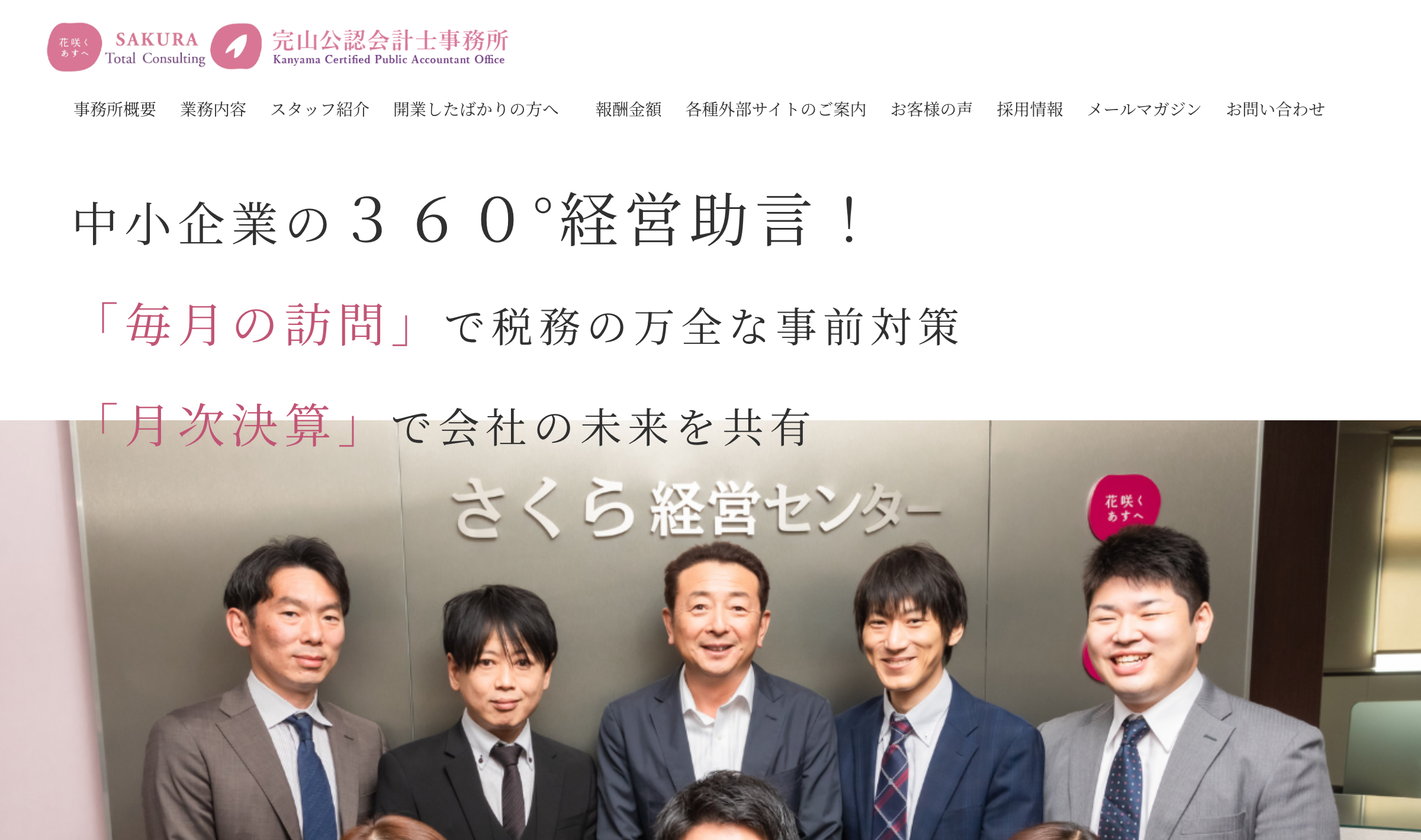 兵庫県西宮市の完山公認会計士事務所は、中小企業の「360°経営助言」を掲げ、お客様の発展を専門家としてサポートする税理士事務所です。毎月の訪問と月次決算を通じて、現状を把握し、利益とキャッシュフローに関する具体的な経営助言を行うことで、会社の未来を共有し、成長戦略の実現を支援しています。