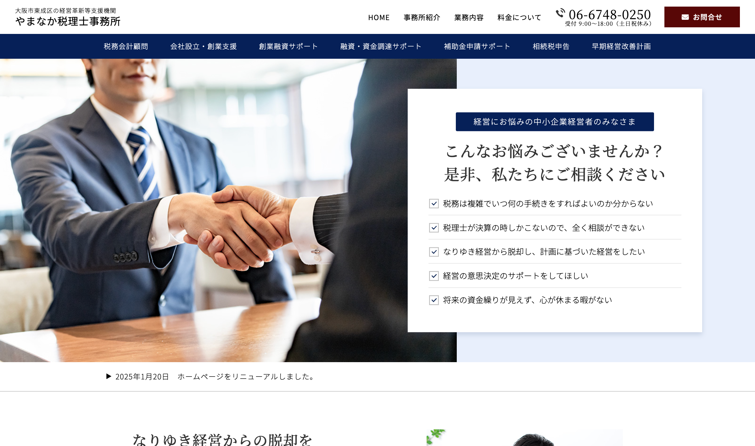 大阪市東成区にあるやまなか税理士事務所は、中小企業の黒字化支援と経営力強化に特化した税理士事務所です。代表は大手税理士法人や上場企業での豊富な経験を持ち、税務会計の枠を超えたサポートを行ってくれます。経営者と二人三脚で歩み、事業計画の策定や予実管理を徹底することで、目標達成と確実な黒字化へと導いてくれる頼もしい事務所です。