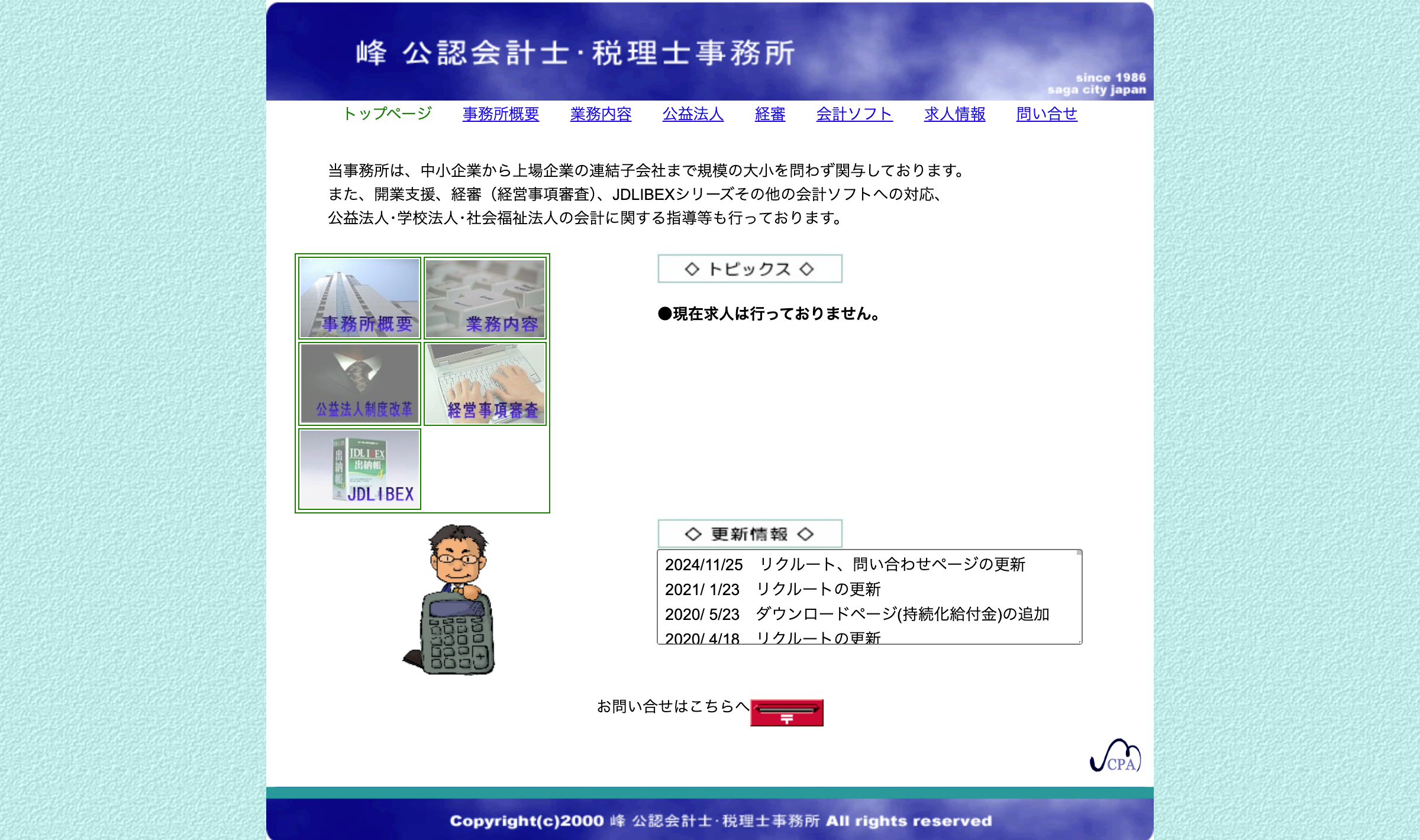 主な取扱業務決算業務、会社設立、年末調整、業績計算、各種資料作成など