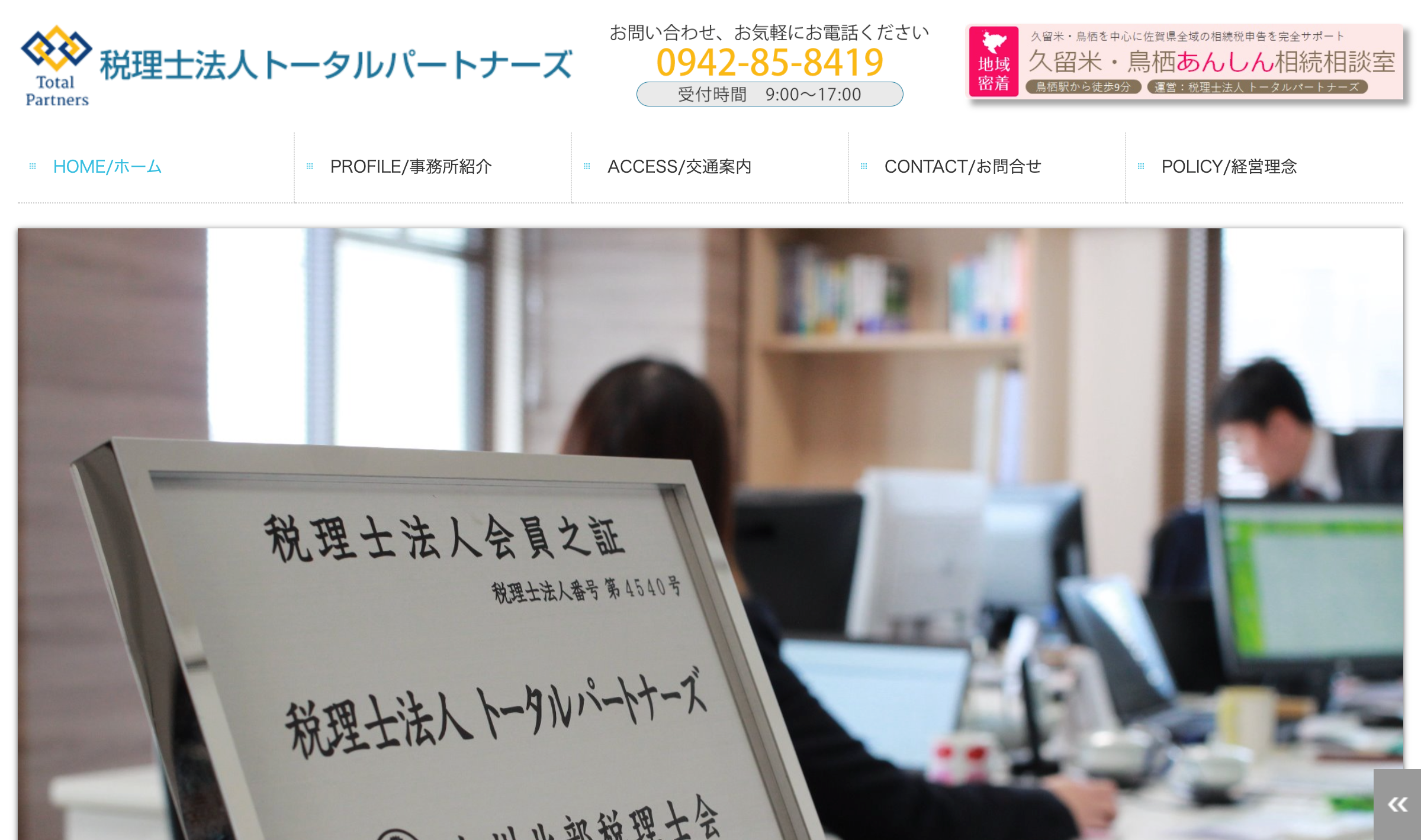 佐賀県鳥栖市にある税理士法人トータルパートナーズは、元企業経営者としての経験を持つ税理士が、実践的なノウハウを駆使して企業の繁栄をサポートする税理士法人です。法人専門フロアと相続専門フロアを設け、企業経営から個人の資産運用まで専門的に対応しています。また、他士業と強固に提携しており、労務や法務に関する課題にも総合的に対応できる体制が整った頼れる会計事務所です。