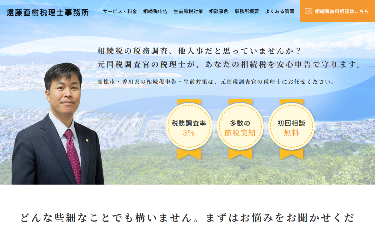 香川県高松市で相続税・贈与税を専門とする税理士事務所です。国税事務28年の経験を持つ代表が、税務調査のリスクを最小限に抑えた正確な申告書を作成。豊富な節税実績と、お客様とのトラブルが一切ない丁寧な対応で、あなたの大切な資産を守ります。