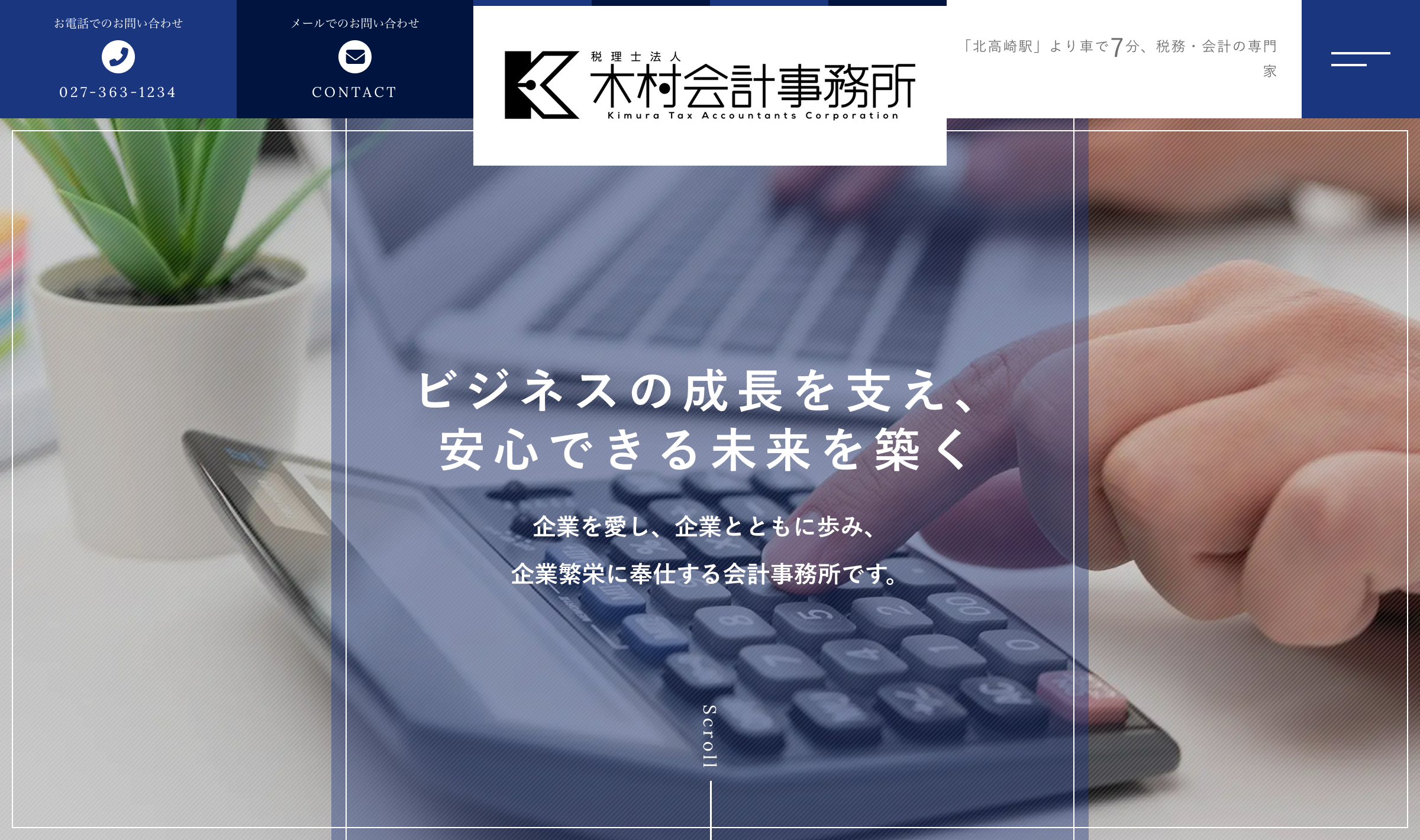 群馬県高崎市で創業50年の歴史を誇る税理士法人木村会計事務所は、「企業を愛し、企業とともに歩む」を理念に掲げる専門家集団です。高崎市の地域に根ざし、税理士として税務・会計の枠を超えた経営全般のサポートを提供しています。長年の実績に裏打ちされた深い専門知識と、DX化支援やM&Aなどの最新ニーズにも応える柔軟な対応力で、お客様の確かな成長と安心できる未来を支えます。