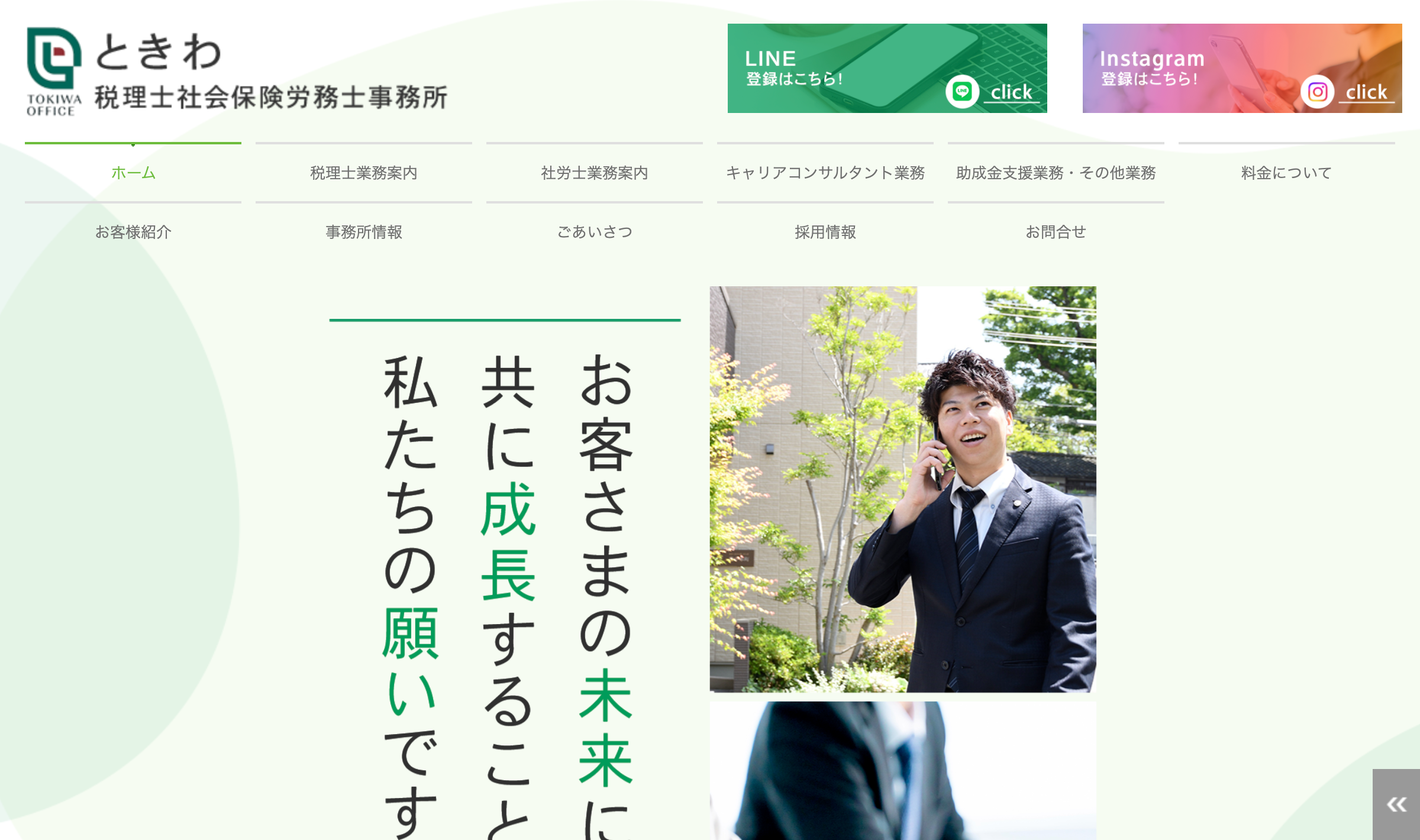 | 主な取扱業務 | 税理士業務案内、社労士業務案内、キャリアコンサルタント業務、助成金支援業務など |