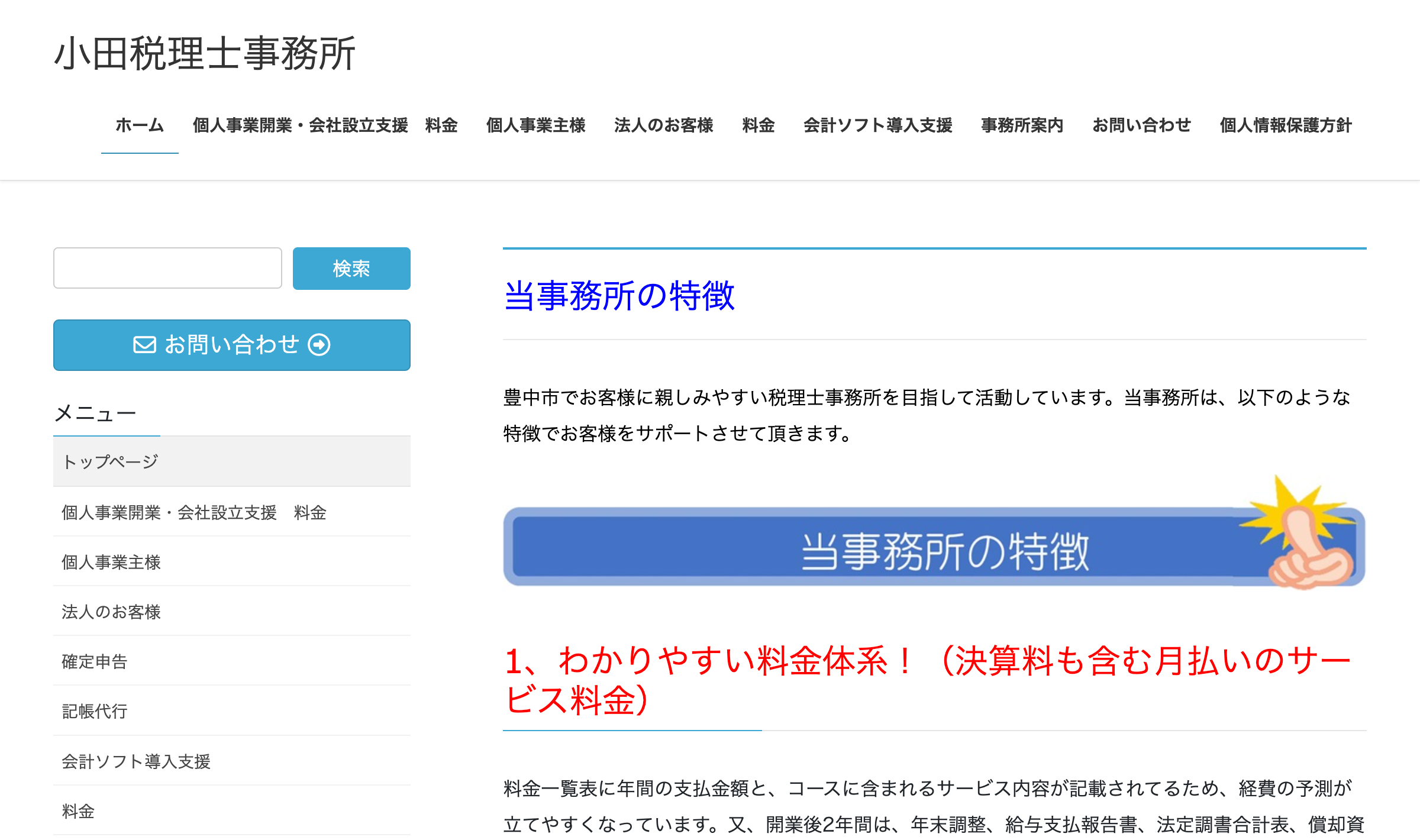 豊中市にある小田税理士事務所は、新規開業・会社設立のお客様や小規模法人、個人事業主を専門にサポートしています。「親しみやすい税理士事務所」を目指し、アットホームな雰囲気で相談しやすい環境を心がけています。弥生会計での自計化支援に強みがあり、わかりやすい月払い料金体系と、毎年サービス料金を見直す仕組みで、お客様の事業資金に余裕を持てるよう、共に成長していくことを大切にしています。